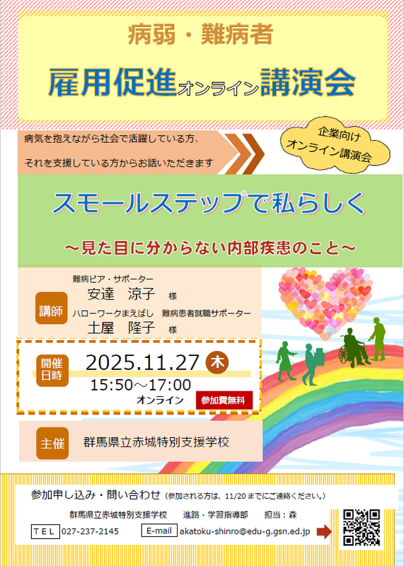 〇難病者雇用促進企業向け講演会のお知らせを掲載しました。