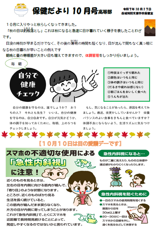 10月 ほけんだより10月号 小学部.pdf 保健だより10月号 中学部.pdf 保健だより10月号 高等部.pdf 9月 ほけんだより 9月号 小学部.pdf 保健便り 9月号 中学部.pdf 保健便り 9月号 高等部.pdf 7月 ほけんだより 7月号 小学部.pdf 保健だより 7月号 中学部.pdf 保健だより 7月号 高等部.pdf 6月 ほけんだより 6月号 小学部.pdf 保健だより 6月号 中学部.pdf 保健だより 6月号 高等部.pdf 5月 ほけんだより 5月号 小学部.pdf 保健だより 5月号 中学部.pdf 保健だより 5月号 高等部.pdf 4月 ほけんだより4月号小学部.pdf 保健だより4月号中学部.pdf 保健だより4月号高等部.pdf